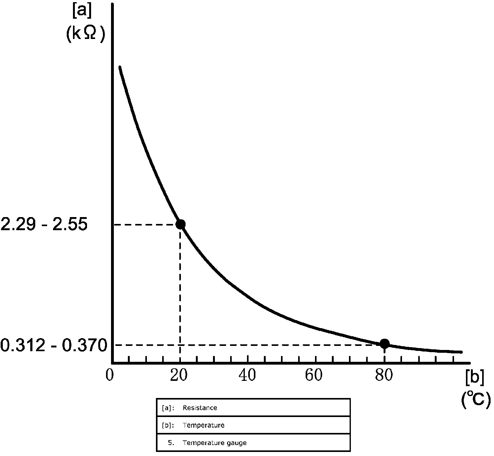 20 °C (68 °F): 2.29 - 2.55 kohms