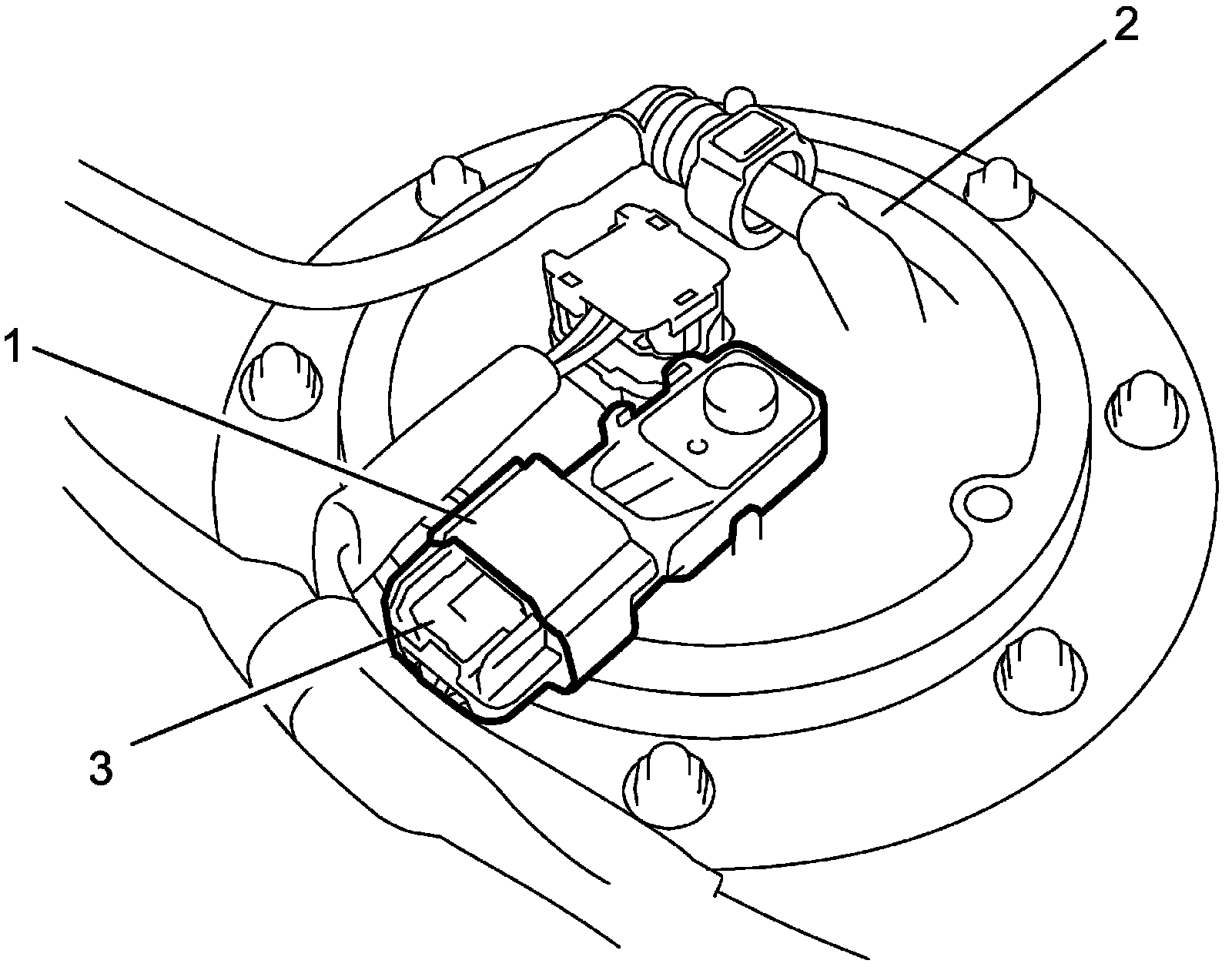 2. Disconnect connector (3) from fuel tank pressure sensor.