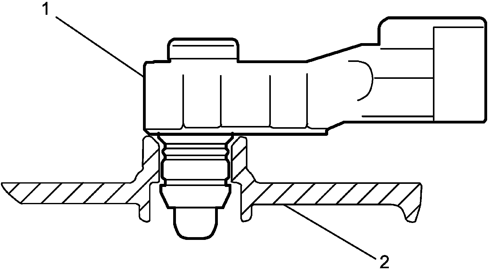 - Install fuel tank pressure sensor (1) to fuel pump assembly (2) securely as shown in figure.