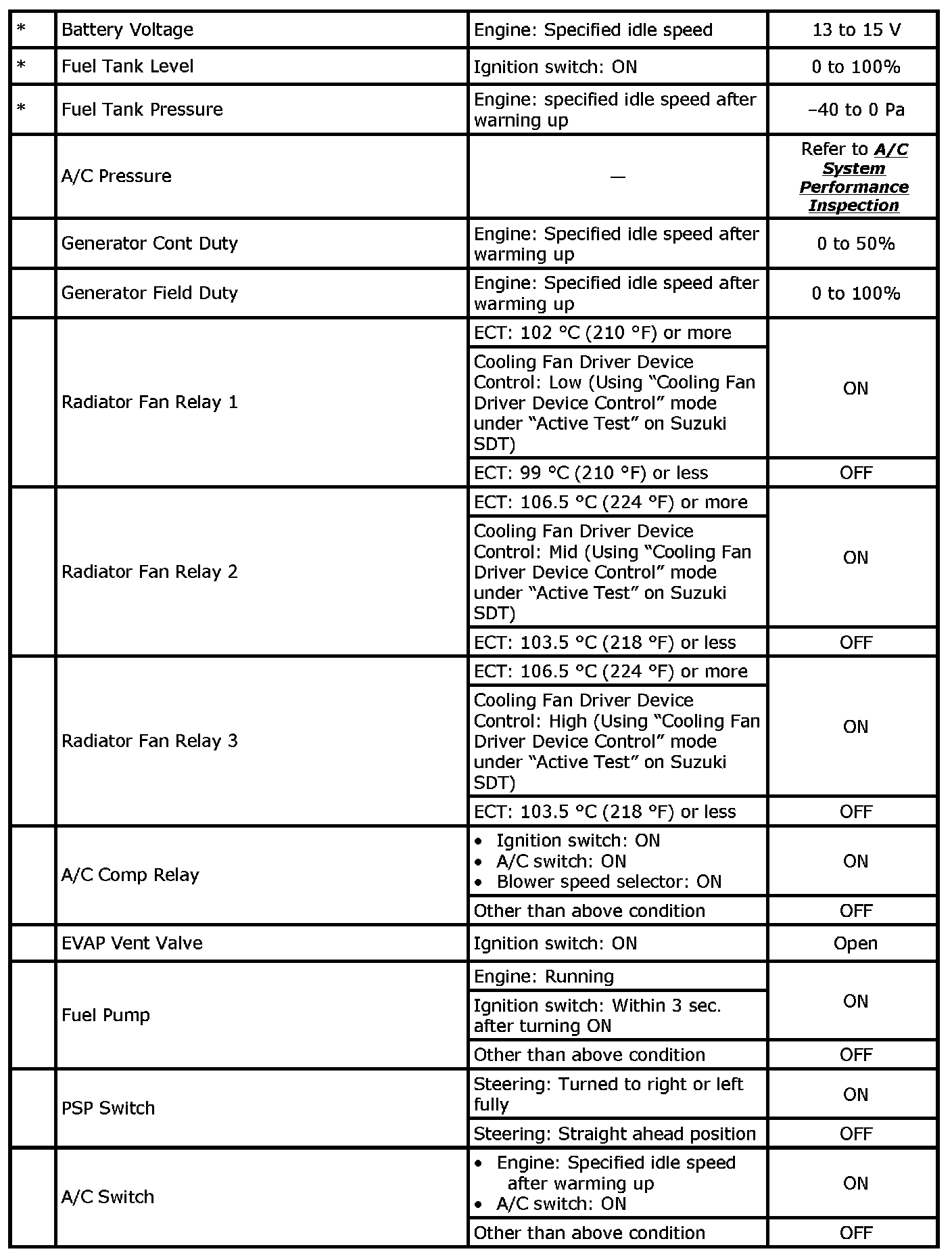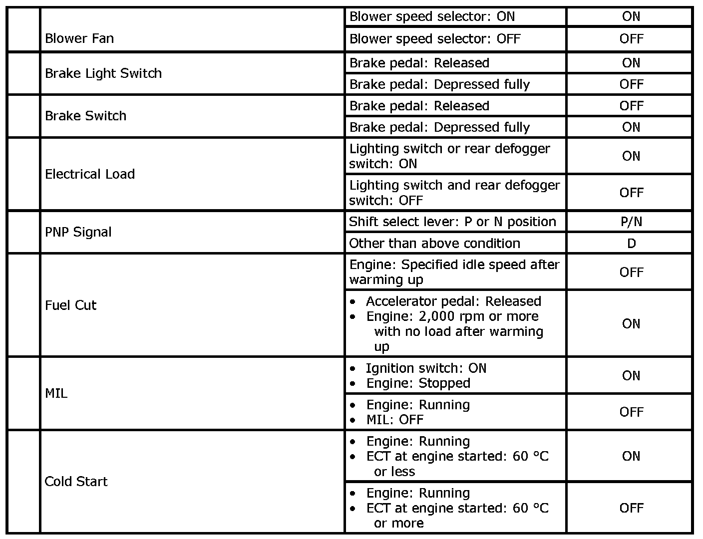 Also, conditions that can be checked by the scan tool are those detected by ECM and output from ECM as commands and there may be cases where the engine or actuator is not operating (in the condition) as indicated by the scan tool.