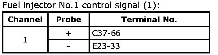 Fuel injector No.1 control signal, ignition coil No.1 control signal, CMP sensor (bank 1 / intake side) signal and CKP sensor signalMeasurement condition
