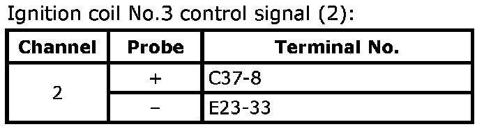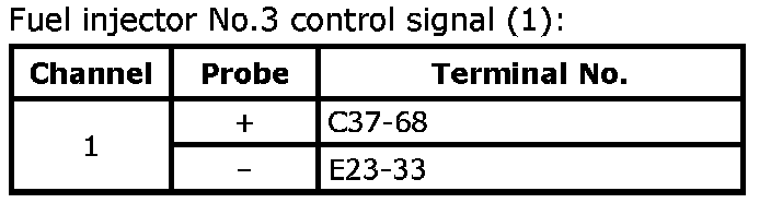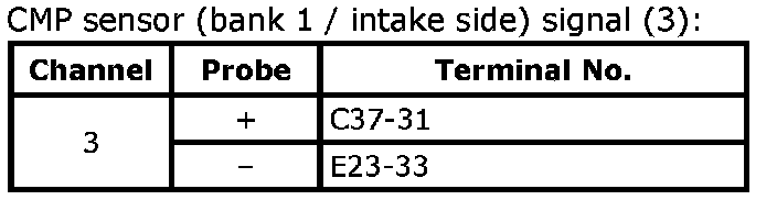 Fuel injector No.3 control signal, ignition coil No.3 control signal, CMP sensor (bank 1 / intake side) signal and CKP sensor signal