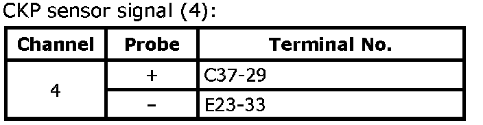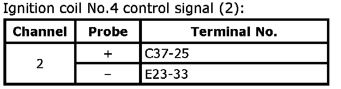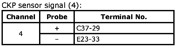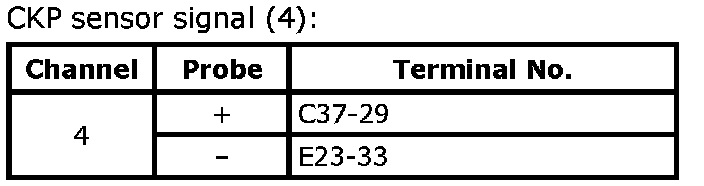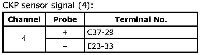Fuel injector No.4 control signal, ignition coil No.4 control signal, CMP sensor (bank 1 / intake side) signal and CKP sensor signal