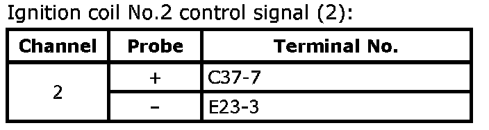 Fuel injector No.2 control signal, ignition coil No.2 control signal, CMP sensor (bank 1 / intake side) signal and CKP sensor signal