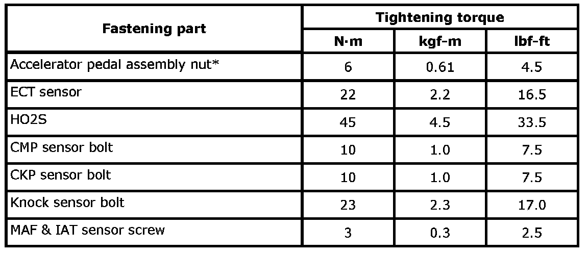 Tightening Torque Specifications