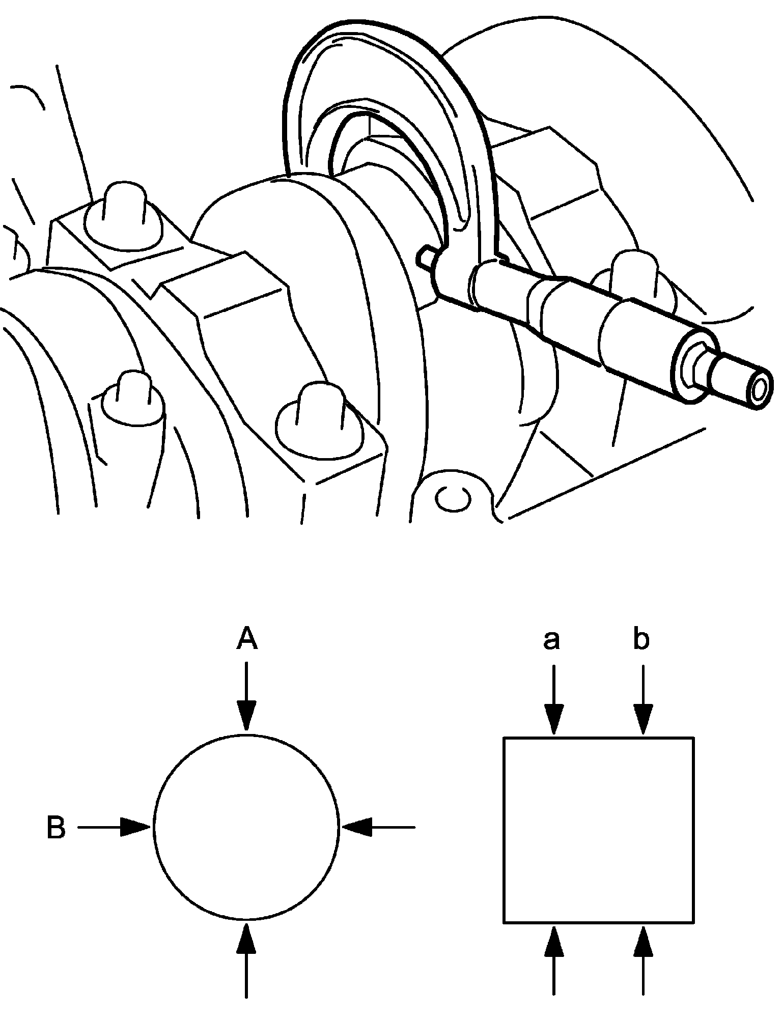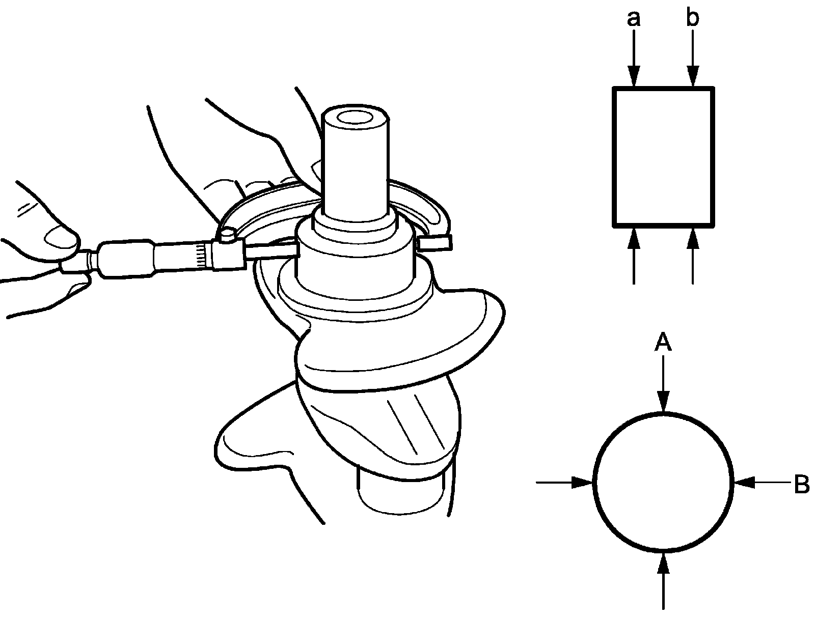 Crankshaft out-of-round (A - B) and taper (a - b)