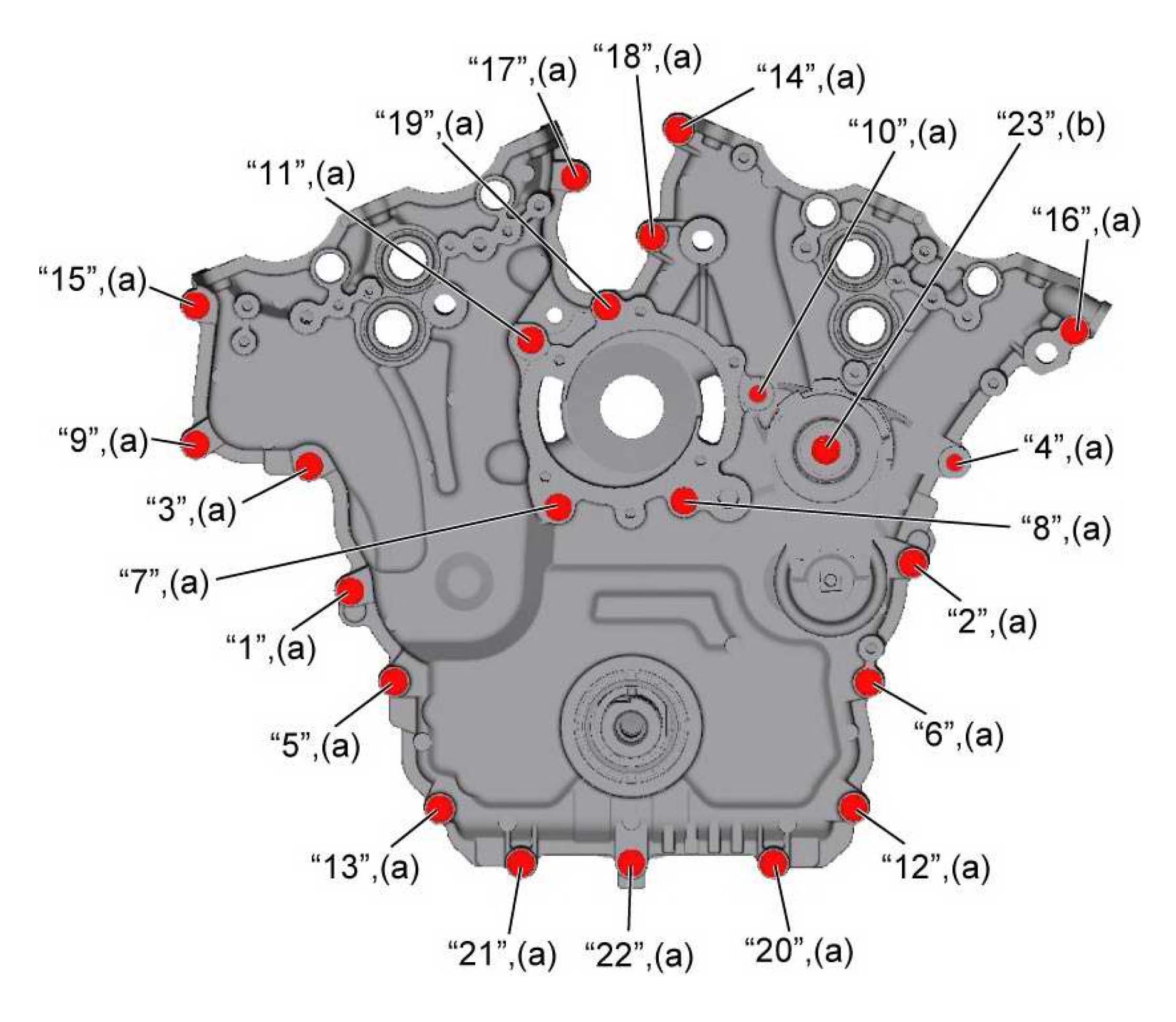 20 Nm (2.0 kgf-m, 15.0 lbf-ft) in numerical order ("1" - "22") shown in figure evenly and gradually.
