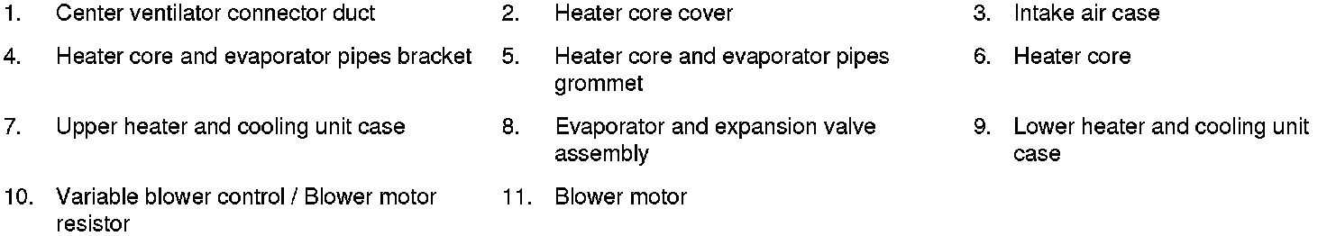 1) Remove the heater core. Refer to [Heater Core: Component] Component.