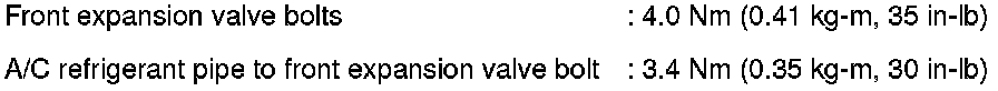 2) Remove the high-pressure pipe and low-pressure pipe bolt (A) from the front expansion valve (1).