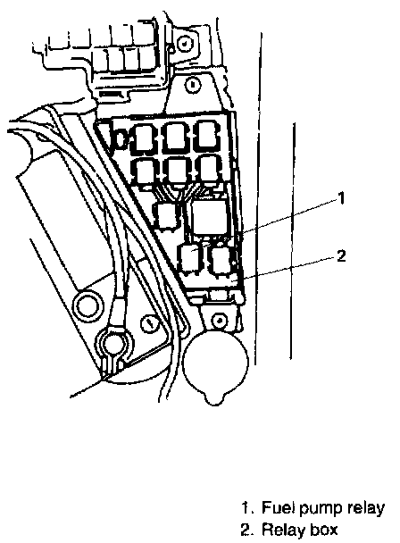 6) Upon completion of servicing, connect fuel pump relay to relay box and install relay box cover.