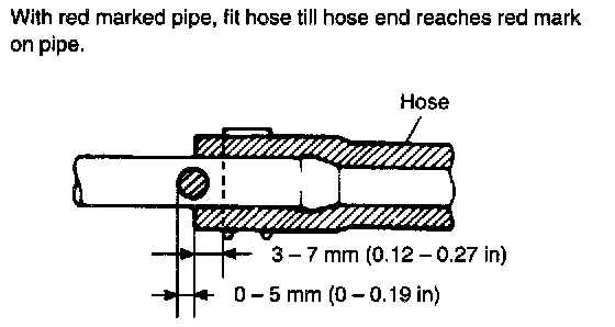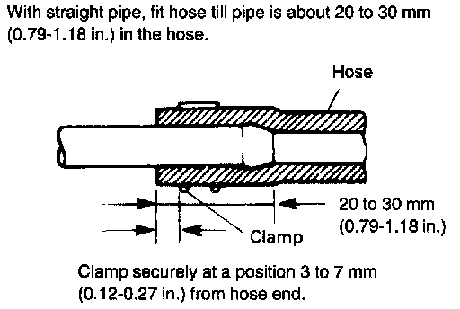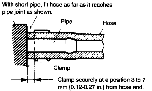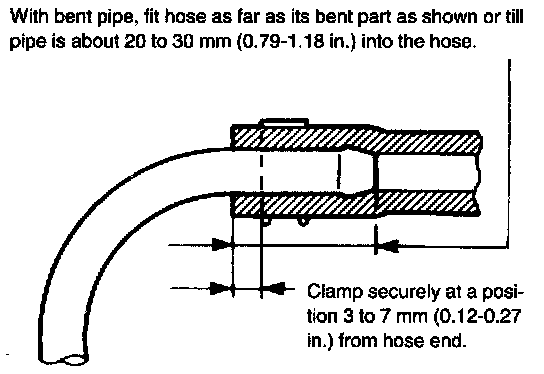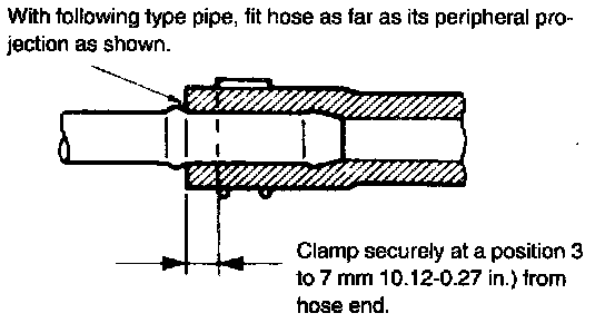 - Fuel or fuel vapor hose connection varies with each type of pipe. When reconnecting fuel or fuel vapor hose, be sure to connect and clamp each hose correctly referring to left figure Hose Connection. After connecting, make sure that it has no twist or kink.