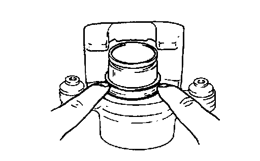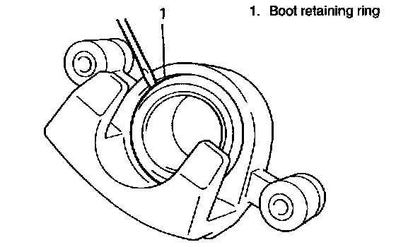 1. Before inserting piston into cylinder, install boot onto piston as shown.