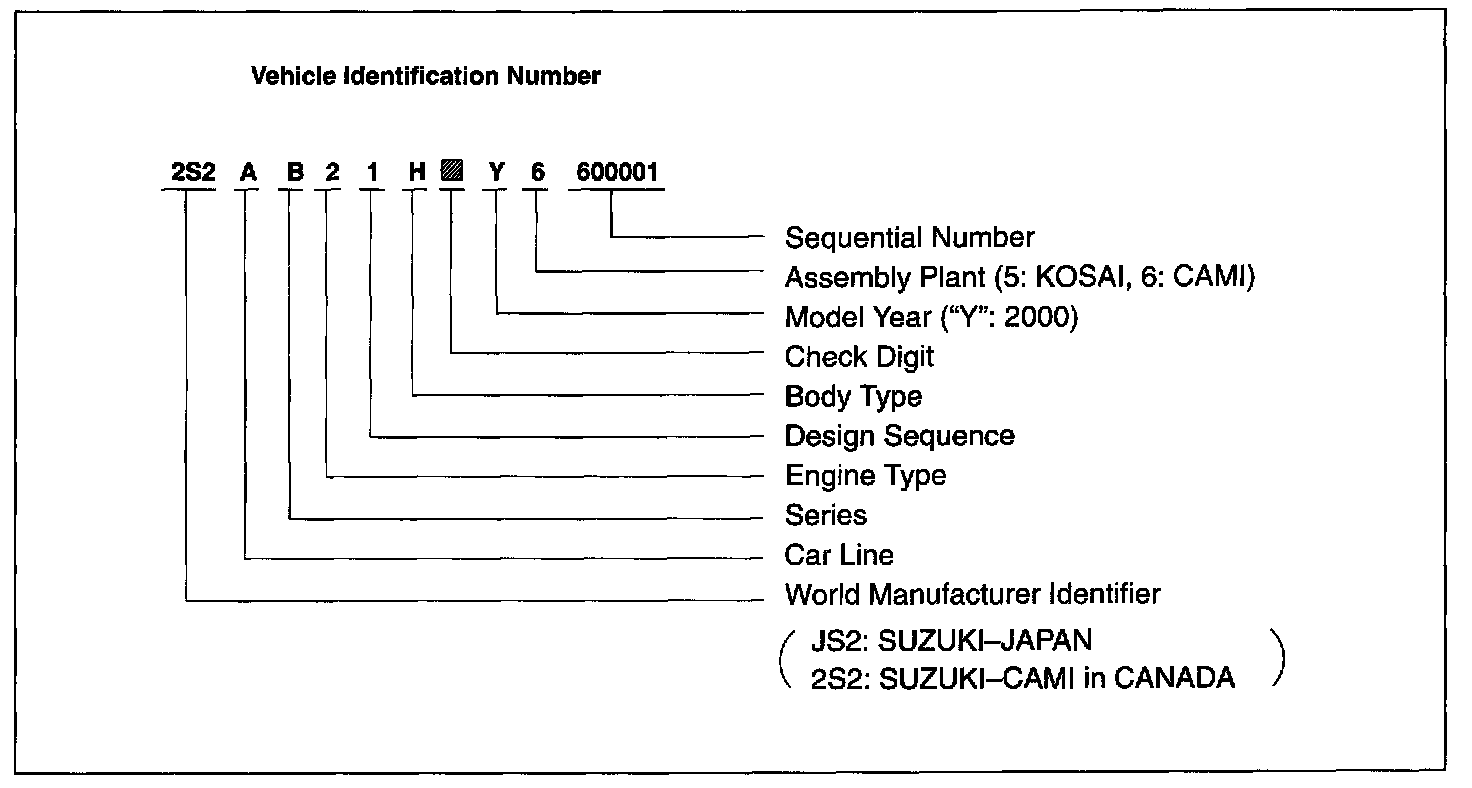 The vehicle identification number is on the left front top of the instrument panel. Refer to figure for detailed VIN cord information and its location.
