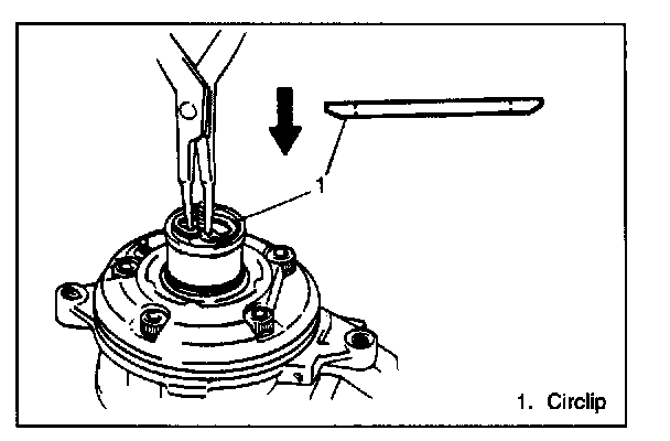 NOTE: With mechanical seal pressed in completely, its upper face must come to a the position lower than circlip fitting groove. Check this condition visually.