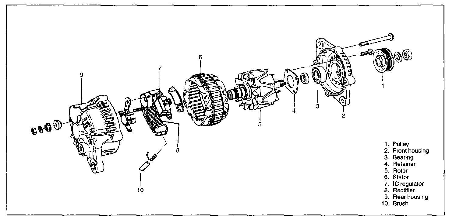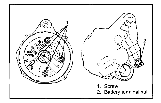 8. Remove stator from rear housing by removing four screws and battery terminal nut.