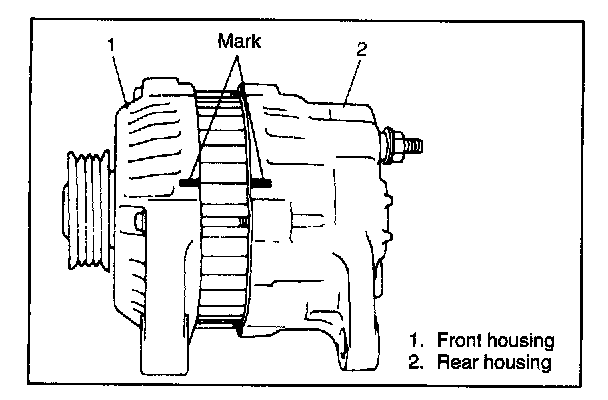 1. For easier reinstallation, provide match marks on both front and rear housing as shown before separating them.