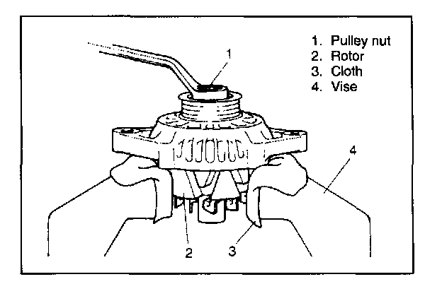NOTE: When using vise, put clean cloth between rotor and vise so as not to cause damage to rotor.