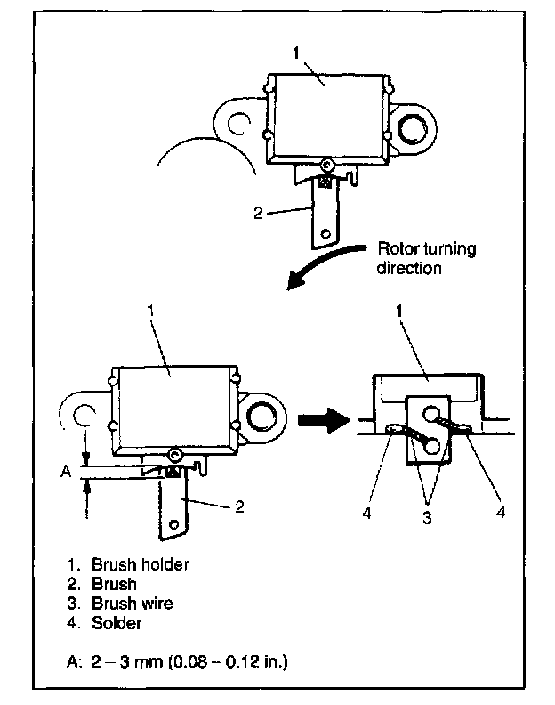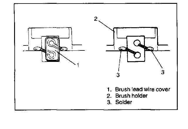 9. To remove brush, remove wire cover from brush holder and then disconnect brush wire from regulator terminal by using soldering iron.