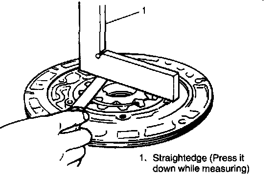 Using a straightedge and a feeler gauge, measure side clearance between gear and pump body.