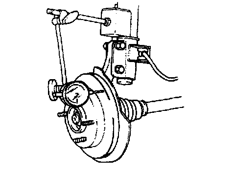 Mount a dial indicator as shown and measure the runout at 25 mm (0.98 inch) from the outer edge of the disc.