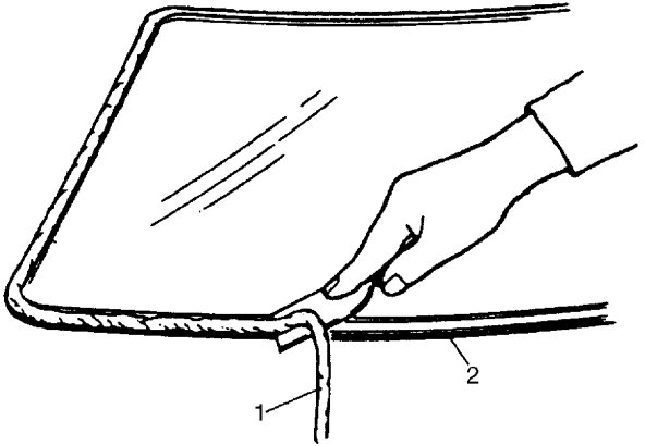 7. Cut adhesive all around glass with piano string referring to Windshield Removal and Installation:Hatchback.