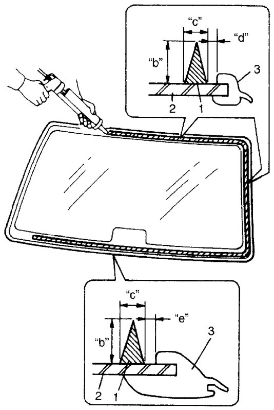 12. Check for water leakage by running water from hose over window. If leakage is found, dry window and fill leaky point with adhesive. If water still leaks even after that, remove glass and start installation procedure all over again.