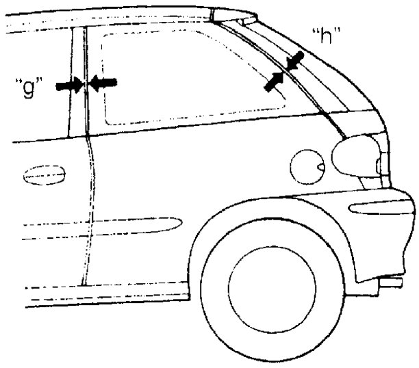 11. Press glass against body so that clearance "g" and "h" as shown.