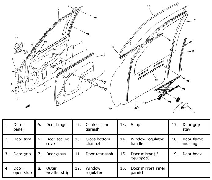 Front Door Window Regulator Removal and InstallationFront Door Glass Components: