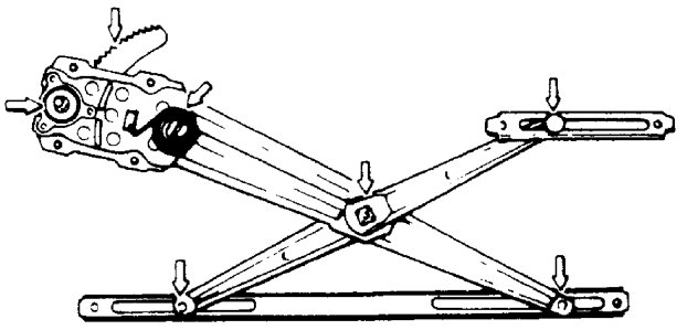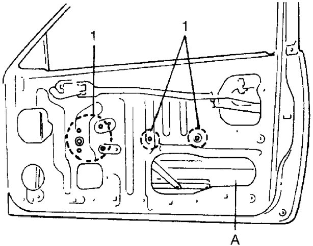 2. Remove window regulator attaching screws (1) (six pcs.).