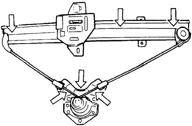 2. Remove door window regulator attaching screws (1) (six pcs.).