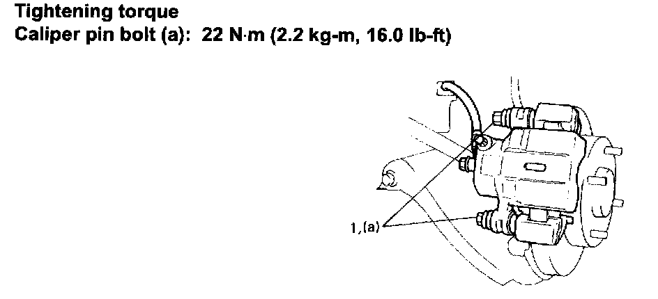 2. Install caliper and torque caliper (slide) pin bolts (1) to specification.