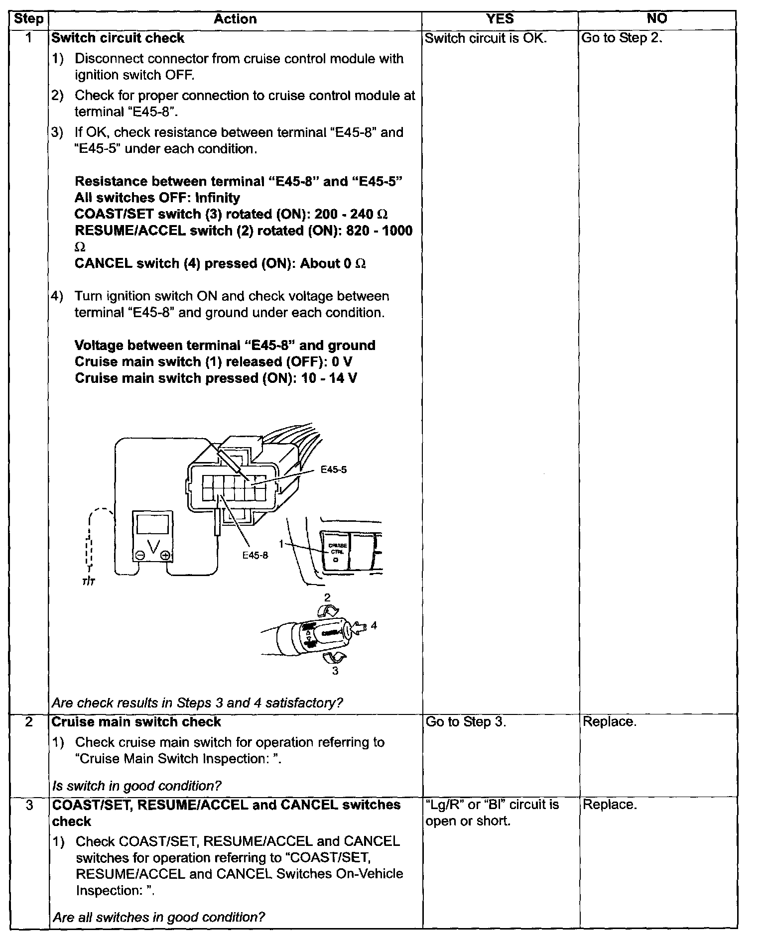Cruise Main Switch, Coast/Set, Resume/Accel, Cancel Check