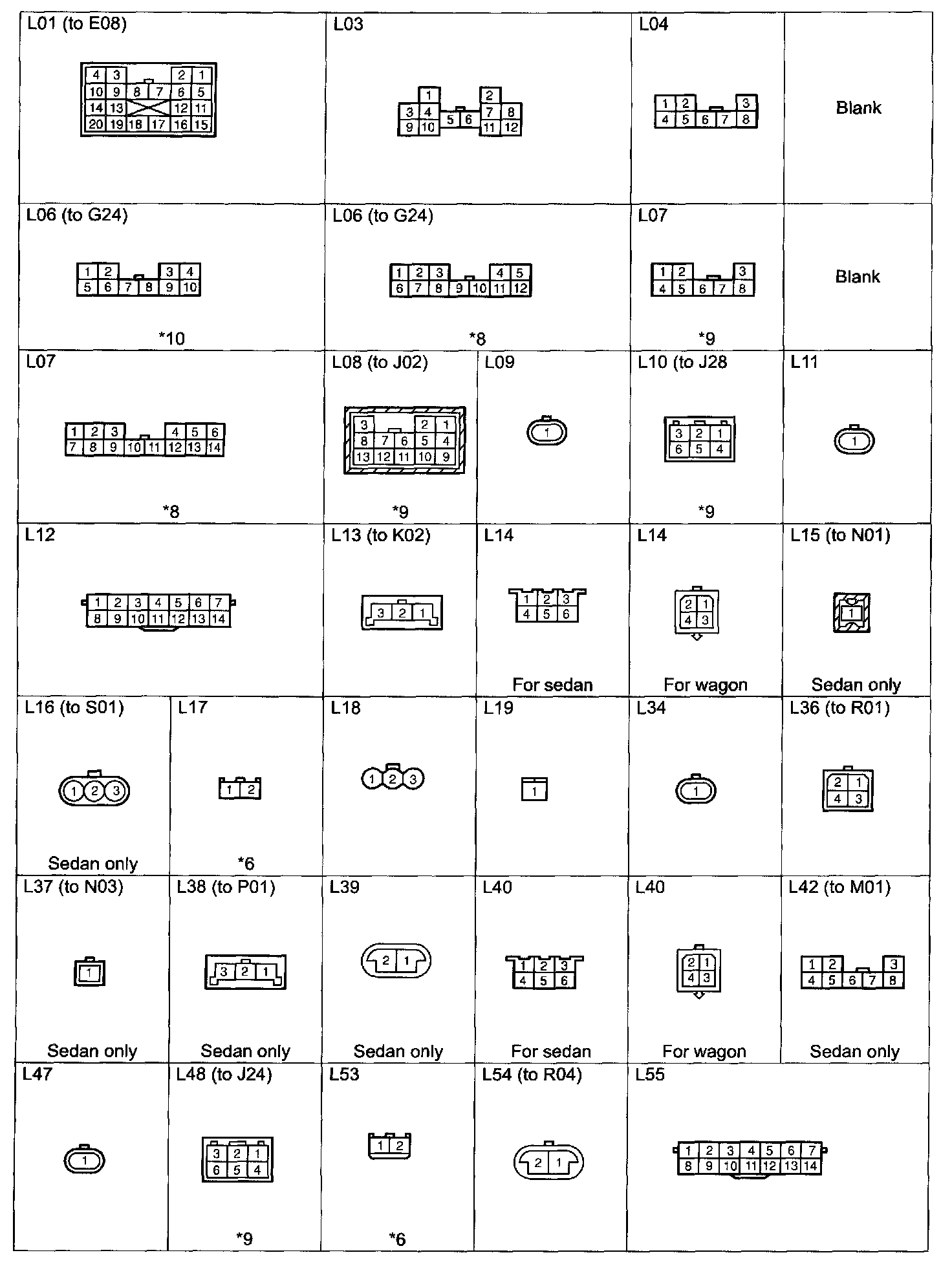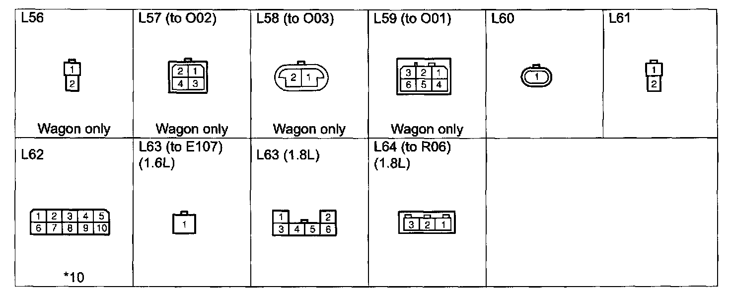 NOTE: The illustrations below show the harness side connectors, but not the component side connectors.NOTE: