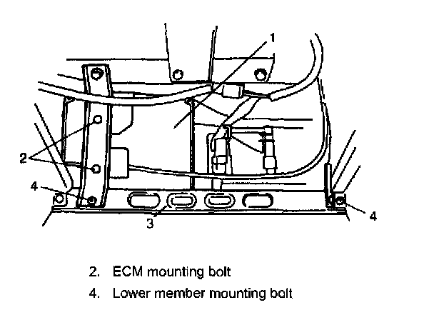 3. Remove glove box, ECM (1) and instrument panel lower member (3).