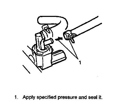 4. While observing tank pressure displayed on SUZUKI scan tool, apply 3.5 kPa, 14 in.Aq, 26 mmHg pressure into purge hose and fuel tank and seal it.