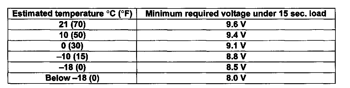 - The voltage does not drop below the minimum as listed in the table.