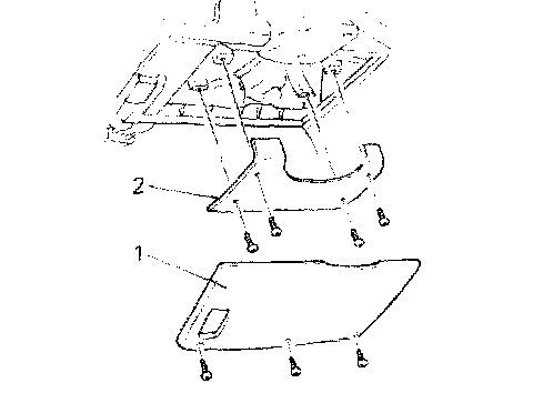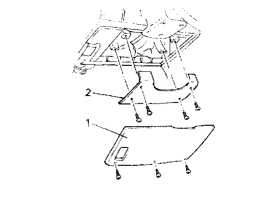 4) Remove hole cover (1) and knee bolster panel (2).