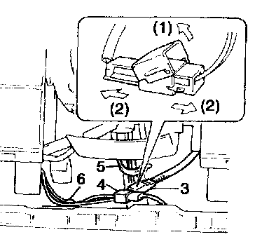 ^ Fix wire harness with clamp (6) and band (5).