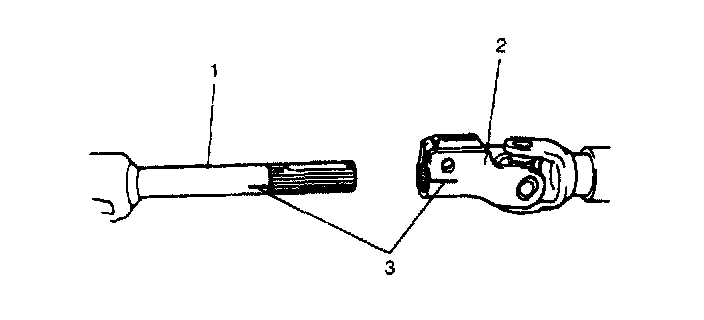 1) Insert lower joint (1) into upper joint of steering column (2) by matching it to marks (3) made before removal.