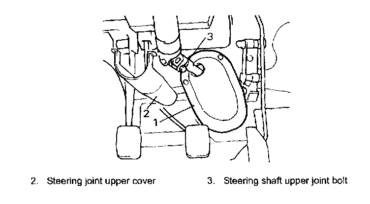 NOTE: After tightening column nuts, bolt to steering shaft upper joint bolt (2) should be tightened.