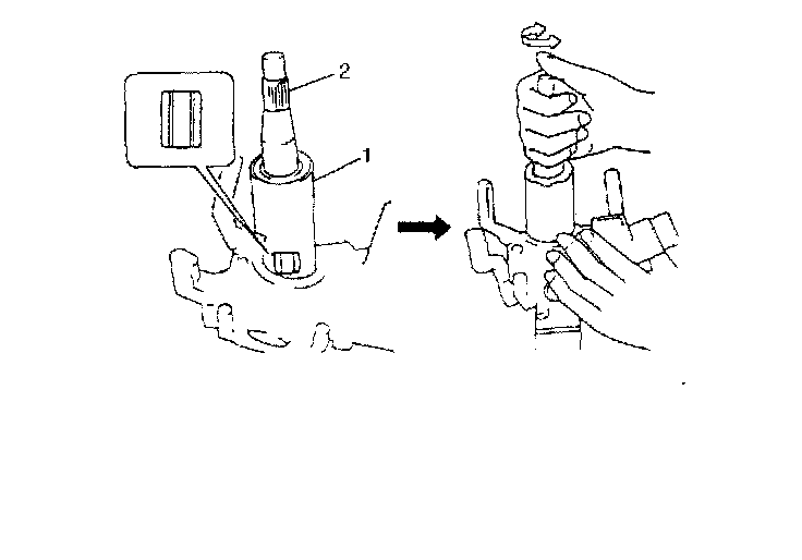 1) Position oblong hole of steering shaft in the center of hole in column (1).