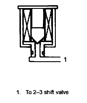 When the solenoid is OFF, as the plunger does not move and the fluid passage is closed to maintain the hydraulic pressure, the hydraulic pressure applied to (1) is then applied to the 2-3 shift valve.