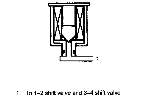 When the solenoid is OFF, as the plunger does not move and the fluid passage is closed to maintain the hydraulic pressure, the hydraulic pressure applied to (1) is then applied to the 1-2 shift valve and 3-4 shift valve.