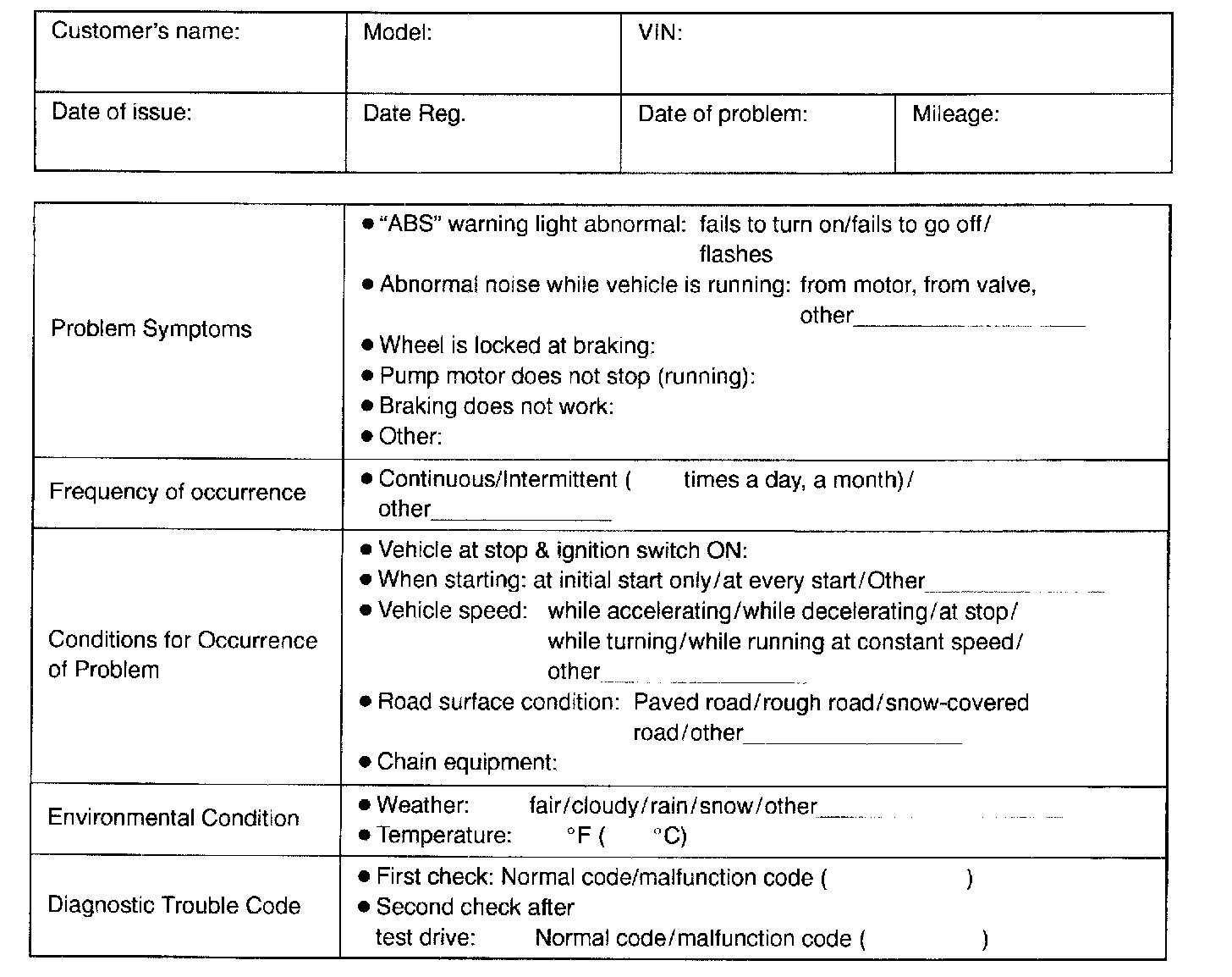 Record details of the problem (failure, complaint) and how it occurred as described by the customer. For this purpose, use of such a questionnaire form as shown will facilitate collecting information to the point required for proper analysis and diagnosis.