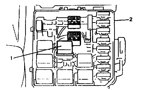 3. Disconnect fuel pump relay (1) from relay box (2).