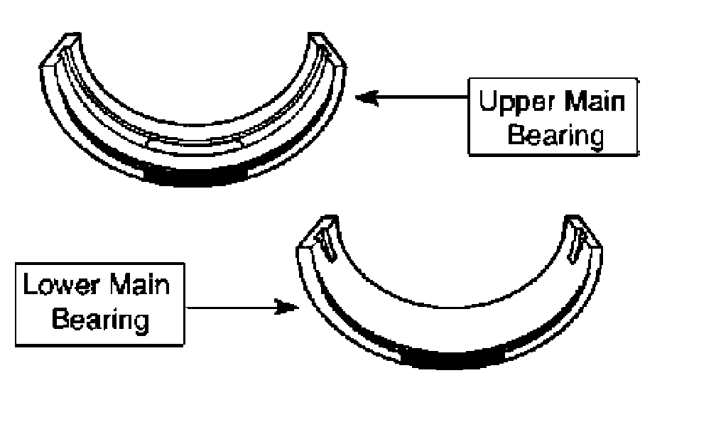 NOTE: The lower crankshaft bearings have different groove shape and the sizes of the crankshaft bearings are identified by the color marks on the side of the bearing, which are green (Size-0), yellow (Size-1), and pink (Size-2).