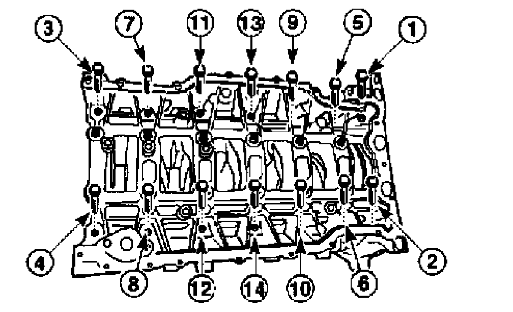21. Remove the bed plate inner bolts in the sequence shown.