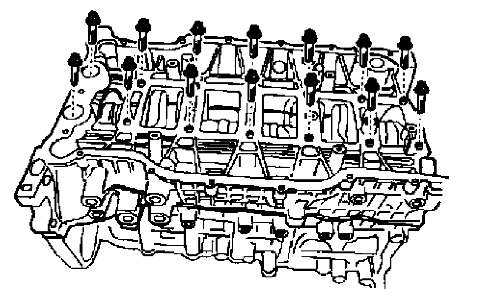 Tighten the bed plate inner bolts to 33 Nm (24 ft. lbs.). After tightening all the inner bolts, turn the bolts by 135° each.
