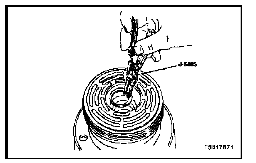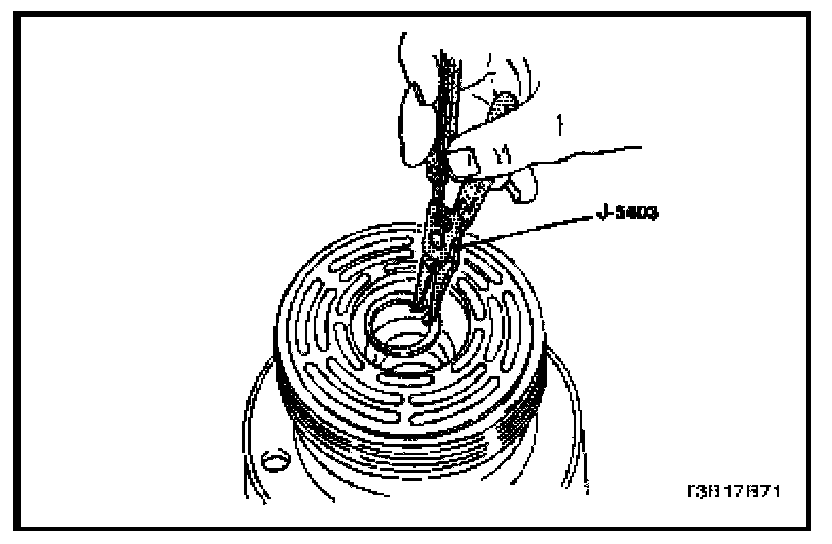 5. Use the snap ring pliers J-5403 to remove the shaft seal retaining ring.