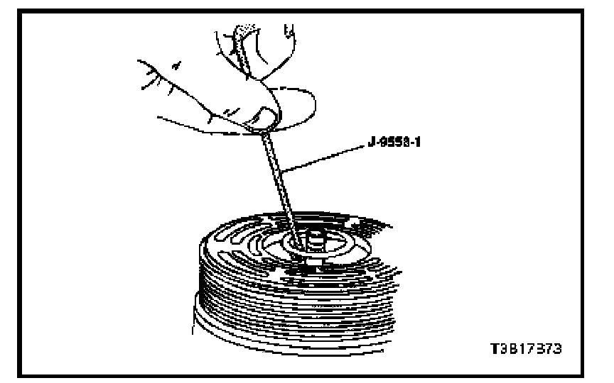 4. Remove the clutch drive plate and hub assembly from the compressor. Refer to Clutch Plate and Hub Assembly Disassembly.